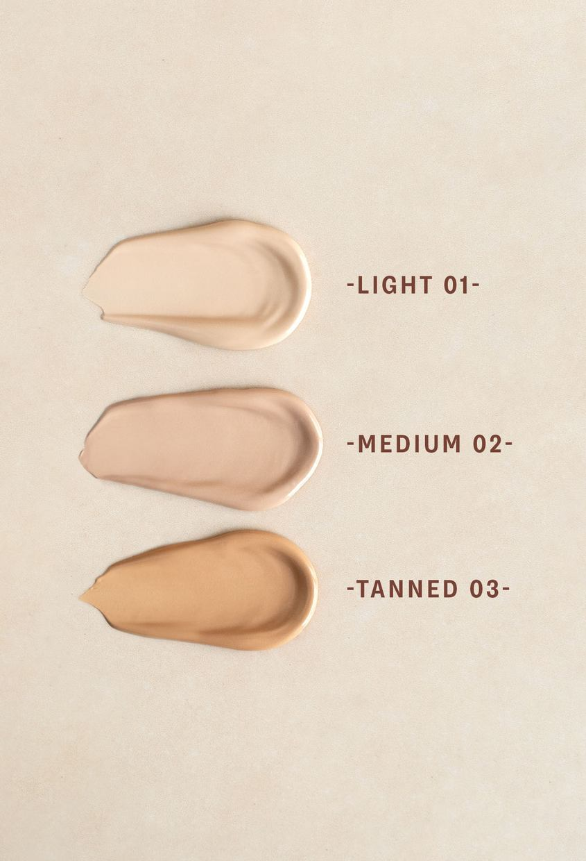 Water (Aqua), Glycine Soja (Soybean) Oil, Isoamyl Laurate, Alcohol* denat., Glycerin, Tri (Polyglyceryl-3/Lauryl) Hydrogenated Trilinoleate, Glyceryl Oleate, Shea Butter Ethyl Esters, Silica, Tridecane, Tocopheryl Acetate, Lecithin, Hippophae Rhamnoides Pomace Extract*, Aloe Barbadensis Leaf Juice Powder*, Helianthus Annuus (Sunflower) Seed Oil*, Magnesium Sulfate, Undecane, Levulinic Acid, Hydrogenated Castor Oil, Sodium Levulinate, Xanthan Gum, Squalane, Tocopherol, Sodium Hydroxide, Lactic Acid, Ascorbyl Palmitate, Hydrogenated Palm Glycerides Citrate, Citric Acid, Fragrance (Parfum)**, Citronellol**, Limonene**, Linalool**, [+/- Mica, Iron Oxide (CI 77491), Iron Oxide (CI 77492), Iron Oxide (CI 77499), Titanium Dioxide (CI 77891)] * Ingredients from certified organic agriculture **natural essential oils |