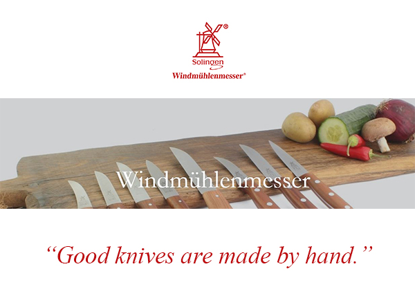 흔히 독일 3대 칼하면 헹켈 쌍동이칼(Zwillinge),베엠에프(WMF),우스토프(Wüsthof) 를 꼽습니다. 만약 단 하나를 선택하라면 ? 바로!!!!!!!!!.............빈트뮐렌(Windmühlen) 을 꼽습니다. 빈트뮐렌은 로버트 헤르더가 1872년에 철강산업으로 유명한 독일의 졸링겐에 세운 칼 제조 전문 회사로 현재도 같은 장소에서 147년의 역사를 이어가고 있습니다. 모든 제품은 수작업으로 제작되며, 강한 내구성이 특징입니다. 천연 너도밤나무, 체리, 올리브나무등을 이용한 손잡이 제작은 빈트뮐렌의 오랜 전통이자 특징입니다. 또한 무분별한 벌목을 지양하는 FSC/PEFC 인증을 토대로 자연 보호에도 힘쓰고 있습니다.