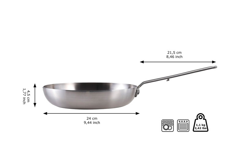 스테인리스 프라이팬은 3중 프라이팬으로, 프라이팬이 3개의 금속층으로 이루어져 있다는 뜻입니다. 외부 레이어는 18/0 스테인레스 스틸로 만들어졌으며 내부 레이어는 고품질 18/8 스테인레스 스틸로 만들어졌습니다. 베이스는 뭔가 특별합니다. 두 개의 고품질 스테인리스 스틸 층 사이에 알루미늄 층이 있습니다. 이렇게 하면 재료가 고르게 가열됩니다. 이 층은 팬 가 장자리까지 확장됩니다. 그래서 흔들리는 배 위에서 고기를 튀기고 싶어도 금세 균일하게 익은 고기 조각이 식탁 위에 올려질 것입니다. 외부 층은 스테인레스 스틸로 만들어져 팬이 매우 견고하고 인덕션에 적합합니다. 팬이 휘어지는 것을 방지하려면 열 충격을 피하십시오. 따라서 차가운 팬을 가장 높은 온도로 설정하지 말고 뜨거운 팬을 차가운 수돗물 아래에 두지 마십시오. 실제로는 매우 간단합니다! 더위에도 잘 견딘다 이 프라이팬은 고온을 견딜 수 있어 야채, 생선, 고기, 감자, 팬케이크 또는 랩을 튀기고 구우며 맛있는 빠에야 또는 샌드위치를 준비하는 데 이상적입니다. 이 팬은 모든 열원에서 사용할 수 있으며 오븐에 안전하게 넣을 수도 있습니다. 그리고 매우 두꺼운 베이스(2.5mm) 덕분에 인덕션을 켜도 휘어지지 않습니다. 물론 천천히 열을 쌓아야 합니다.